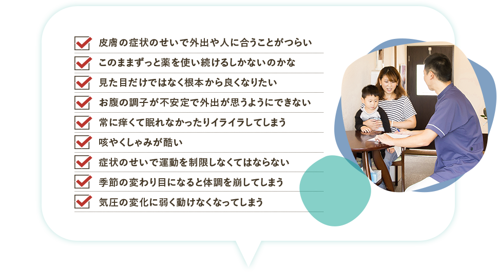 悩まれている方々の笑顔が見たいから、得意とするアトピーやアレルギー症状を中心に扱う治療院として進み続けます。